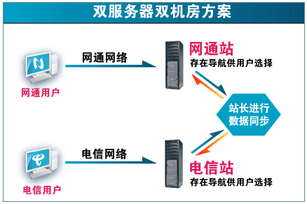 电信网通互相镜像 实际是 一个网站分别租用两个服务器. 分别放在电信机房和网通机房, 然后让电信用户访问电信站点,网通用户访问网通站点. 这样让用户获得最好的网络速度.